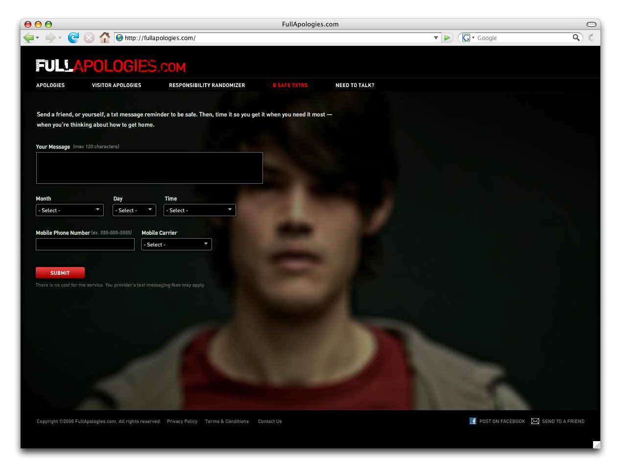 The site was designed to get teens to think about consequences in new ways. Videos showed what life can be like for teens who party and then drive. And we invented digital tools to help kids make smarter decisions when they weren’t in the clearest frame of mind. For example, your sober self could send a text into the future about making the right decision getting home, timed for your potentially not sober self to receive it when it mattered.