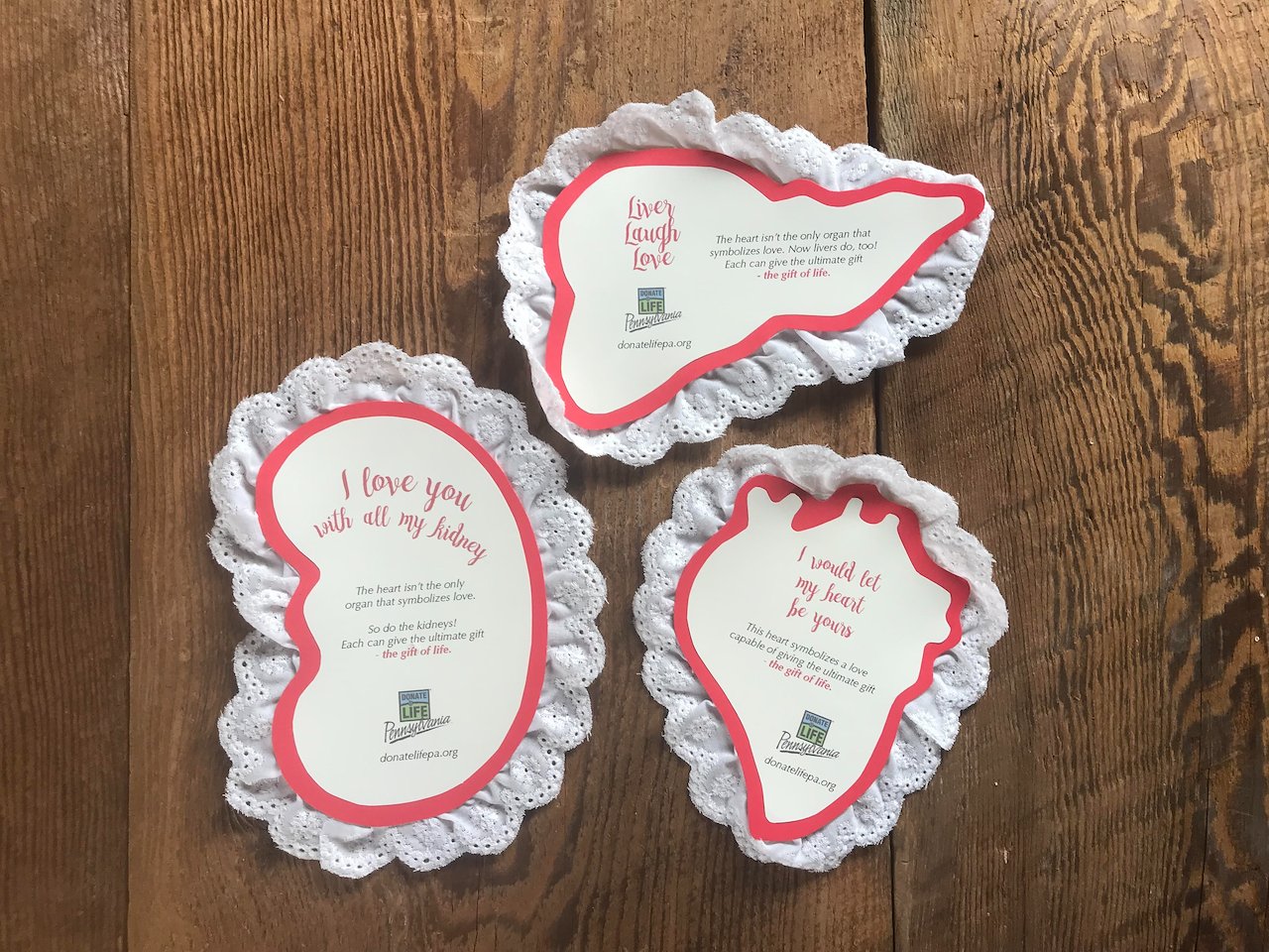 Hand-made Valentine’s Day cards in the shape of livers, kidneys and anatomical hearts. These were sent to influencers, bloggers and the media to spread the word about organ donation.